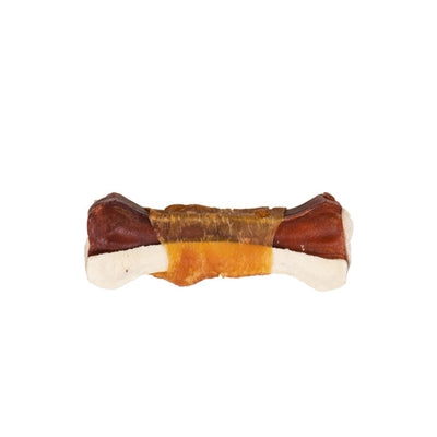 Petstyle Living Geperst Bot Multicolor Met Kip 26 cm is aanvullend diervoer voor honden, een smakelijke hondensnack van runderhuid omwikkeld met kip, tegen verveling en voor een goede mondhygiëne. Dit geperste bot is de perfecte traktatie voor jouw hond! Het bot is gemaakt van runderhuid en omwikkeld met smakelijke gedroogde kip, in twee verschillende kleuren. Lekker kauwen op dit bot gaat verveling tegen en helpt het gebit schoon en gezond te houden: door het kauwen wrijft de runderhuid langs de tanden en verwijdert zo vuil en tandplak van de tanden.