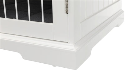 De Trixie Bench Home Kennel Hond Wit 73 x 53 x 53 cm is een comfortabele, houten kamerbench voor de hond, gemaakt van hout met traliedeur en mat in schapenvachtlook.