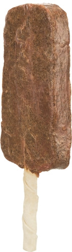 Verwen jouw hond met deze leuke 'popsicle'! Deze 'ijsjes' voor de hond hoeven niet in de vriezer en zijn heerlijk om op te kauwen. De ijsjes zijn gemaakt van een stokje van runderhuid, met heerlijke kip. Dit zorgt voor een ware smaaksensatie, gaat verveling tegen én helpt het gebit te verzorgen. De wrijving van runderhuid langs de tanden helpt bacteriën en tandplak verminderen en het gebit zo gezond te houden. De perfecte traktatie voor jouw hond, die gezond, smakelijk én origineel is!