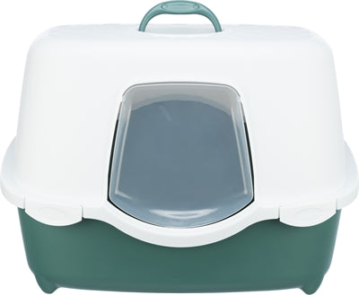 De Trixie Kattenbak Davio Groen/Wit 56X39X39 cm is een gebruiksvriendelijke kattenbak van kunststof met kap en kliksluiting, voorzien van een filter. Op zoek naar de perfecte kattenbak voor jouw geliefde kat? Zoek niet verder dan de Davio kattenbak! Deze kattenbak is de ideale oplossing voor kattenbezitters die op zoek zijn naar een handige, praktische en hygiënische optie voor hun huisdier.