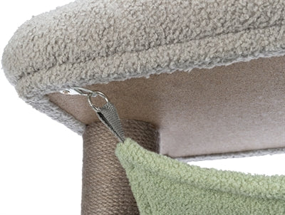 De Trixie Kitten Krabpaal Lunito Grijs/Mintgroen 71 cm is een krabpaal voor kittens in schapenvacht look met schuilplaats, hangmat en twee ligplekken. Krabben is voor katten een natuurlijke bezigheid: zo houden zij hun nagels bij en markeren zij hun territorium. Om te voorkomen dat jouw kitten zijn nagels leert slijpen aan het meubulair, is het aan te raden veel krabmogelijkheden in huis te hebben. Daarvoor is deze handige krabpaal uitermate geschikt! De paal bestaat uit een schuilplaats, twee ligplateaus, een hangmat en twee palen met sisal om de nagels aan te scherpen. De hangmat is verwijderbaar en kan op de hand gewassen kan worden.