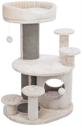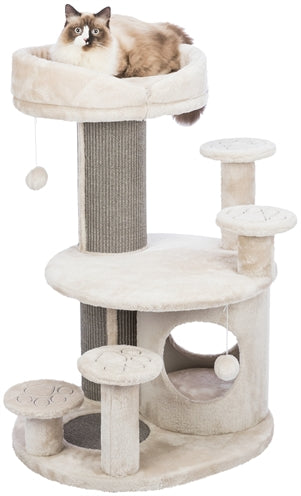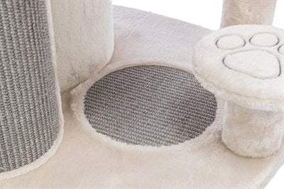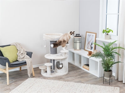 De Trixie Krabpaal Emil Lichtgrijs 69 x 59 x 96 cm is een uitgebreide maar toch compacte krabpaal voor de kat, met relax-mand en schuilhuisje met vitaal kussens die zorgen voor optimale drukverdeling. Krabben is een natuurlijke behoefte van de kat. Hiermee onderhoudt de kat zijn nagels en markeert hij zijn territorium. Biedt jouw kat daarom voldoende krabmogelijkheid, zoals met deze mooie krabpaal van Trixie. Deze krabpaal heeft een stam omwikkeld met sisal om aan te krabben, krabvlak op de bodem en is daarnaast uitgerust met een schuilplaats bekleed met pluche/fleece. De schuilplaats is voorzien van een vitaal kussen met visco-elastisch schuim dat zich aan de lichaamsvorm aanpast, net als het gevoerde ligplateau bovenop. Deze kussen zorgen voor optimale drukverdeling en daardoor beter slapen en soepeler opstaan. Voor goede bereikbaarheid van het ligplateau is de krabpaal uitgerust met opstaphulpjes. De stevige, massieve bodemplaat zorgt voor veel stabiliteit. Een krabpaal met veel mogelijkheden die toch compact is en daarmee ook geschikt voor kleine ruimtes.
